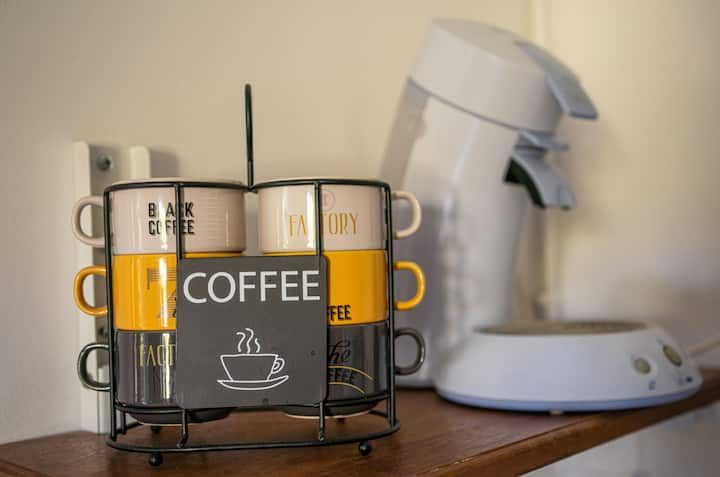 Un poêle est à votre disposition pour créer une atmosphère cosy, le bois est fourni, café et thé d’accueil vous attendent à votre arrivée