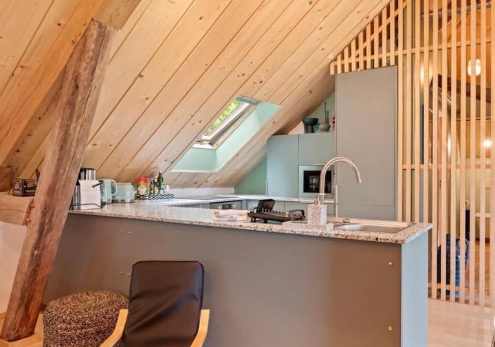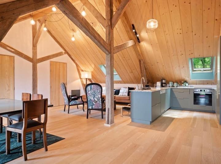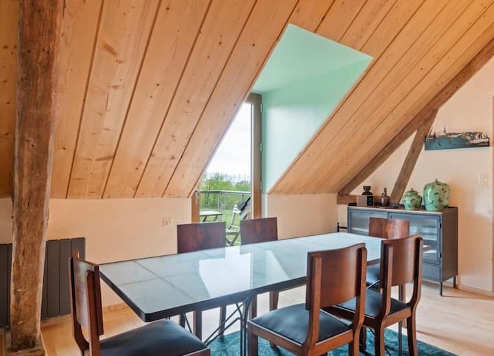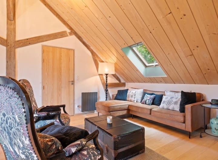 Ici, le temps semble suspendu. Nichée au cœur d'un environnement verdoyant et préservé, La Charretterie vous ouvre les portes d'une adresse confidentielle et prestigieuse sur les hauteurs d'Étretat. Aménagé à l'étage d'une ancienne bâtisse pleine de caractère, ce gîte allie le charme de l'authenticité normande à des prestations haut de gamme, pour une escapade raffinée entre nature et falaises.