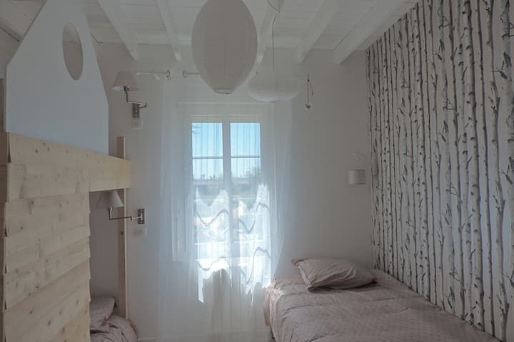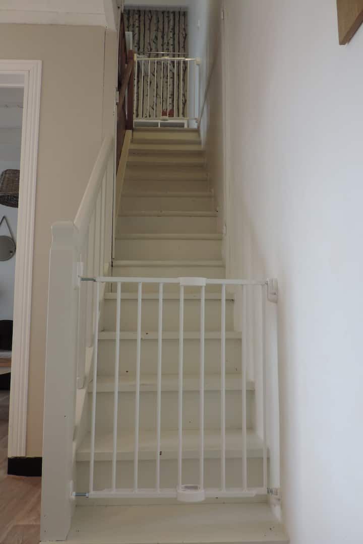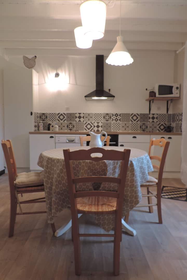Le logement est mitoyen avec un second gite, entièrement rénové et parfaitement isolé, chaque maison dispose de son jardin indépendant pour préserver le calme et l’intimité, idéal pour deux familles souhaitant séjourner côte à côte tout en gardant leur autonomie